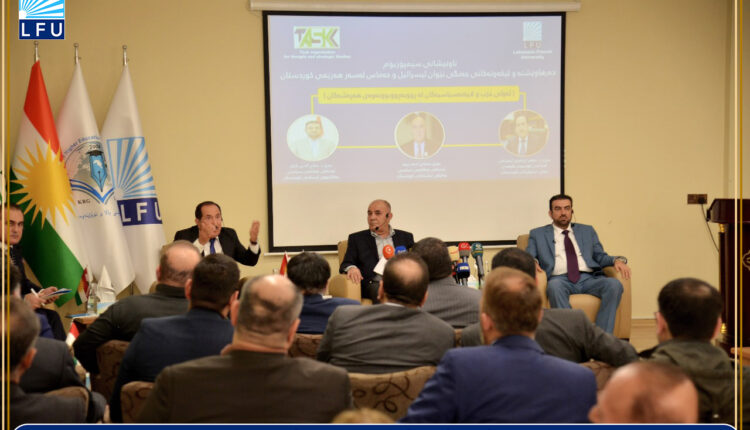 زانکۆی لوبنانی فەڕەنسی بەهاوبەشی لەگەڵ سەنتەری تاسک ڕۆژی چوارشەممە ڕێکەوتی (٢٠٢٣/١٢/٦) هەڵسا بە ئەنجامدانی سیمپۆزیۆمێک بەناو نیشانی(دەرهاویشتەو لێکەوتەکانی جەنگی نێوان ئیسڕائیل و حماس لەسەر عیراق و هەرێمی کوردستان)